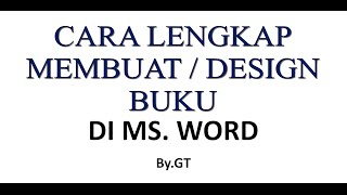 Tutorial Lengkap, Singkat dan Mudah Design Membuat BUKU di Word Dengan menerapkan tutorial ini kita akan bisa membuat atau menciptakan buku sendiri.